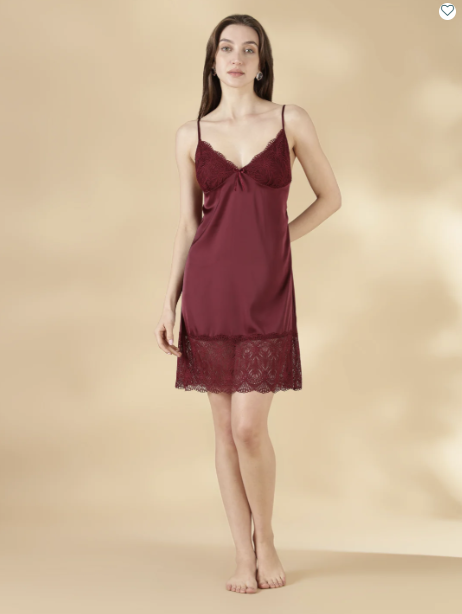 1. Satin Lace Nighty with Matching Robe in Wine Rose